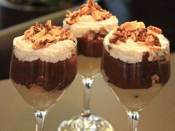 14. Despeje sobre a calda de chocolate o creme de claras.
